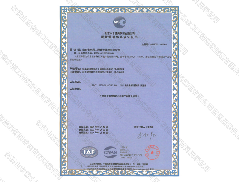 管理體系認證證書